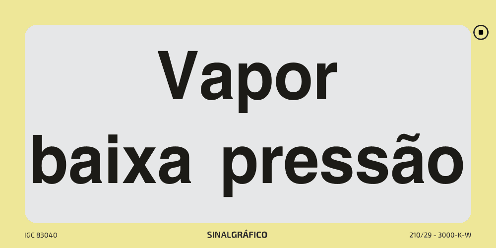 - Placa de sinalética – Vapor baixa pressão Placa de sinalética – Vapor baixa pressão
